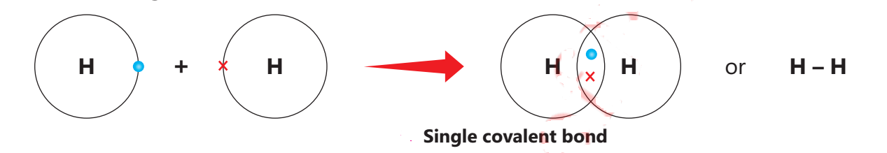 Hydrogen atom has one electron in its outermost shell. Two hydrogen atoms combine through a single covalent bond in which each atom equally contributes one electron in a mutually shared electron pair.